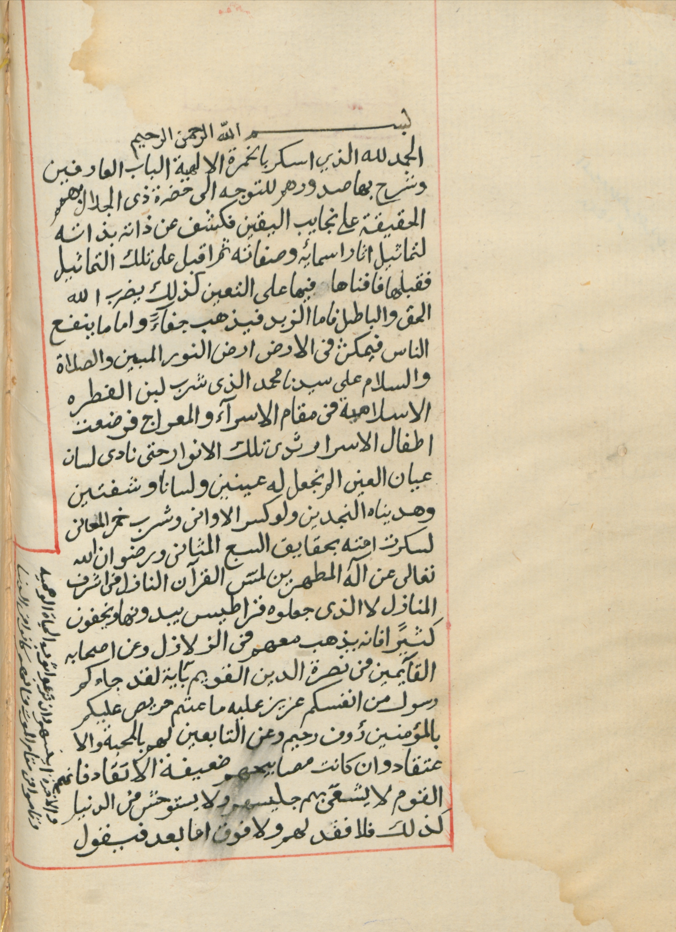 اوله : الحمد لله الذي أسكر بالخمرة الإلهية ألباب العارفين ... اعلم يا أخي بصرك الله تعالى بحقائق ذاتك و غلب بصفحاته على صفاتك.
