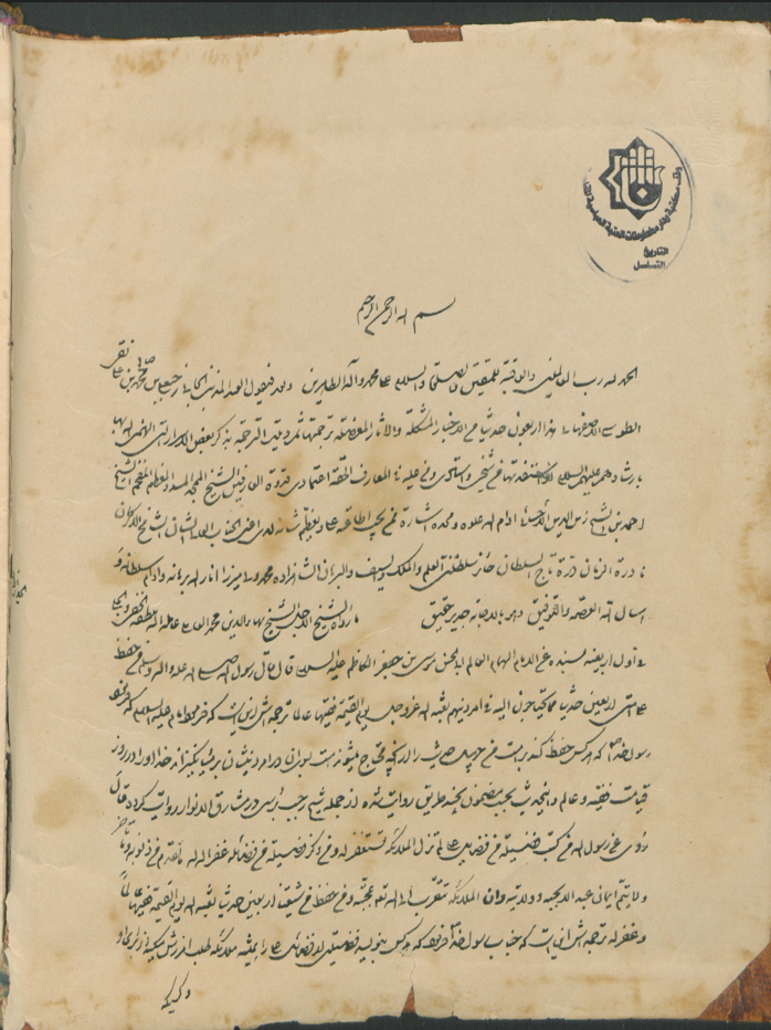 في آخرها ختم (عبده حسين الطباطبائي).