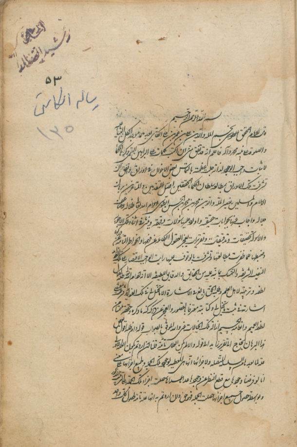 $aاوله : قال الإمام المحقق نجم الملة والدين علي بن عمر بن علي الكاتبي : بعد حمد موجب الكل والثناء عليه والصلاة على نبيه محمد وآله.