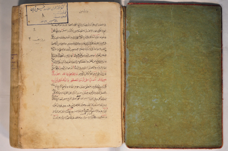 $aالغلاف : جلد وكارتون، احمر.