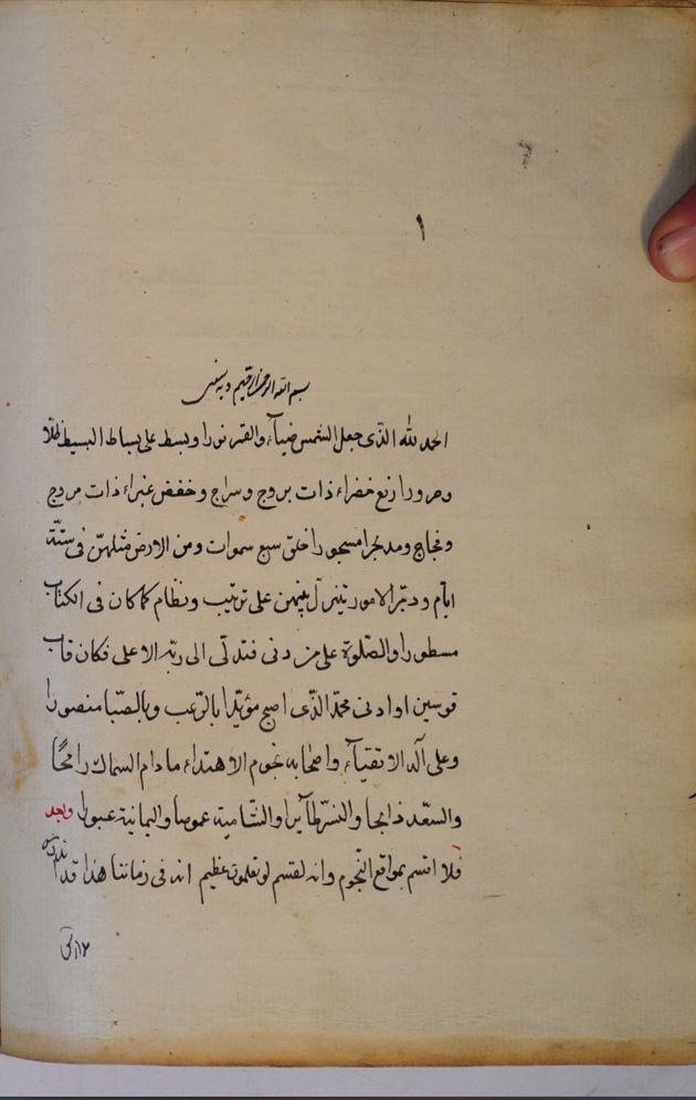 $aاوله : الحمد لله الذي جعل الشمس ضياء والقمر نورا وبسط على بساط البسط ظلا وحرورا رفع خضراء ذات بروج وسراج وخفض غبراء ذات مروج...