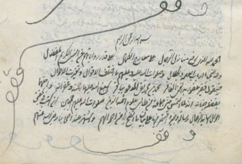 اوله : الحمد لله الذي رفع منازل الرجال على معارج الكمال قدر رواياتهم عن النبي الكريم المفضال وآله النجباء وأبواب العصمة والجلال.