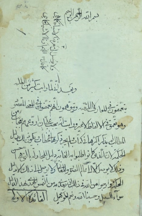أوله : بعد إني لما رأيت كثير من الطلبة يتعمقون في المعارف الالهية، ويتوهمون أنهم تعمقوا في المعنى المقصود، وهو تعمق في الألفاظ...