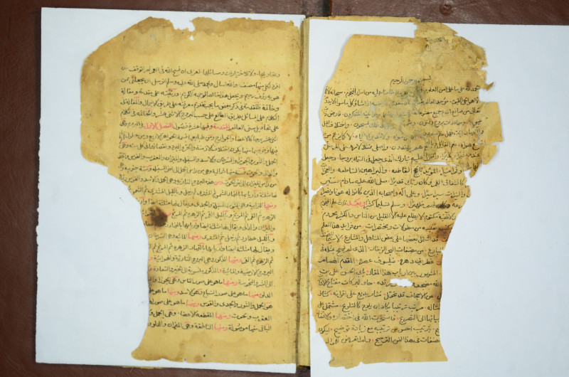 تنظيف الاوراق وترميمها وخياطتها واضافة غلاف خارجي