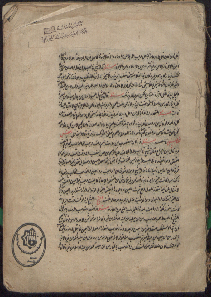 النسخة عليها ختم مكتبة خاصة : عبد اللطيف عبد الله المحمد علي.