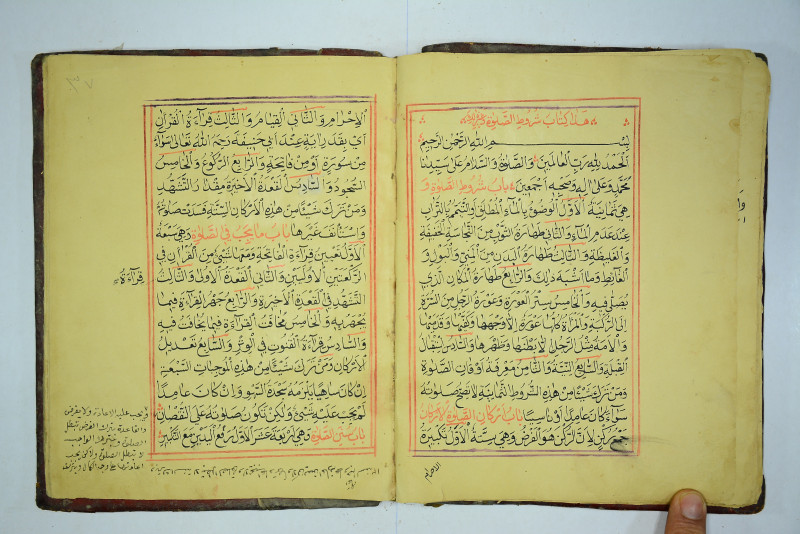 أّوله : الحمد لله رب العالمين...باب شروط الصلاة وهي ثمانية الاول الوضوء بالماء المطلق او التيمم بالتراب عند عدم الماء. والثاني طهارة الثوب...