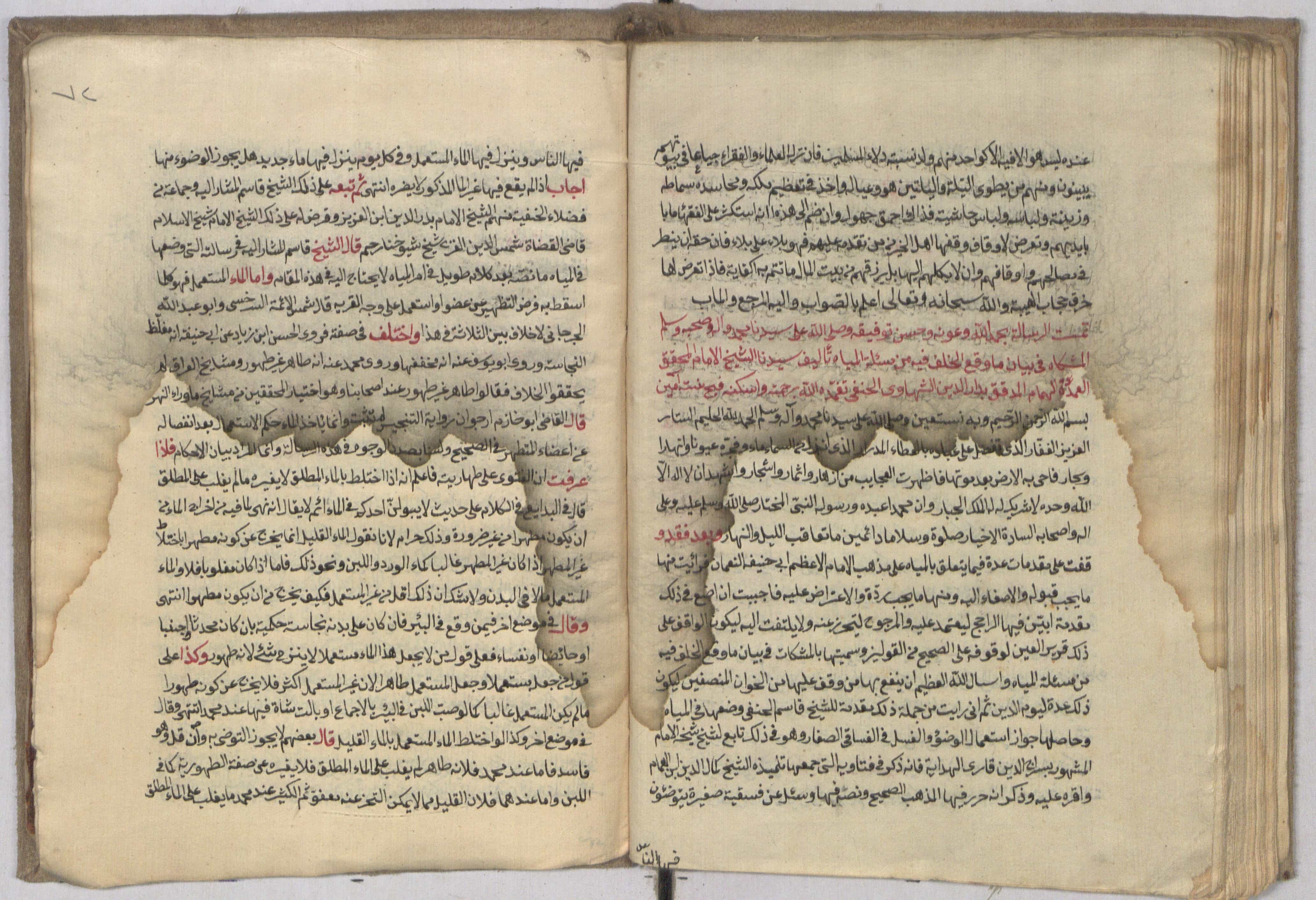 $aاوله : الحمد لله الحليم الستار العزيز الغفار الذي تفضل على عباده بالعطاء المدرار الذي انزل من السماء ماء وفجره عيونا... وبعد فقد وقفت على مقدمات عدة فيما يتعلق بالمياه على مذهب الامام الاعظم ابي حنيفة النعمان...
