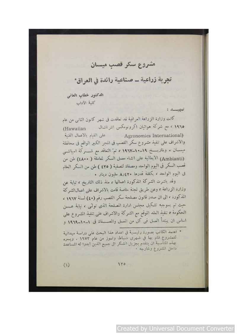 تجربة زراعية صناعية رائدة في العراق /