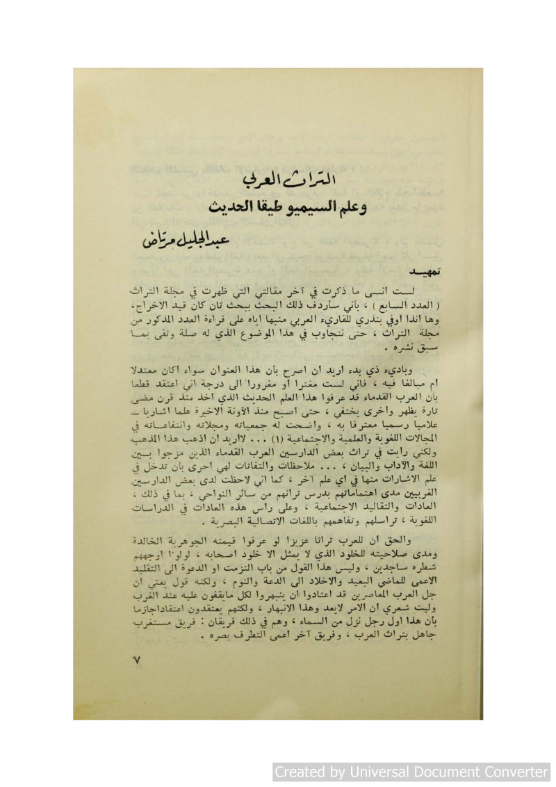 التراث الشعبي : مجلة ثقافية شهرية تعنى بشؤون الفولكلور