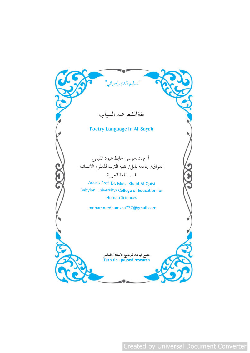النص باللغة العربية ؛ ومستخلصات باللغة العربية والانجليزية.