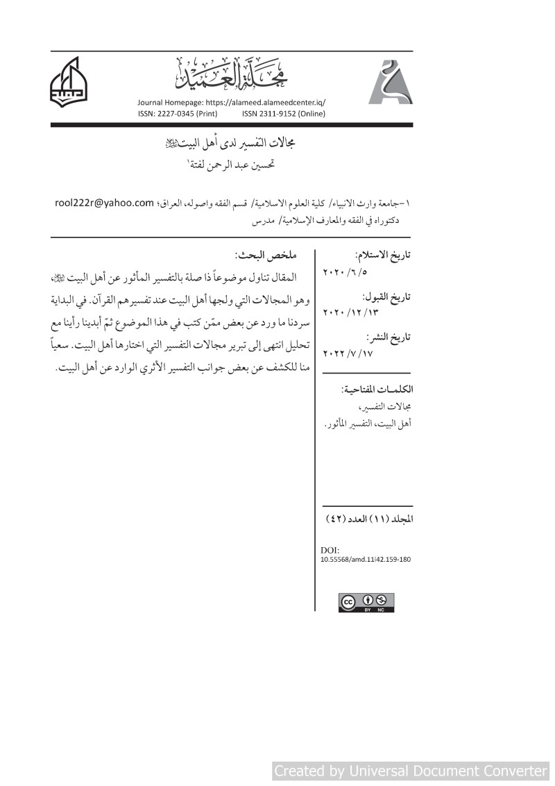 السنة 11، المجلد 11، العدد 42 (حزيران 2022)