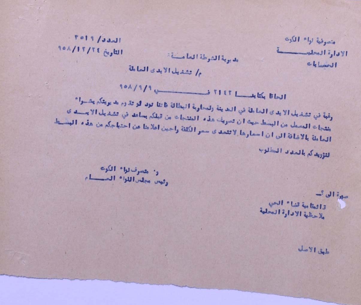 تشفيل الايدي العاملي في لواء متصرفية الكوت لمحاربة البطالة والحث على شراء منتجات المعمل وتصريفها من قبل المتصرفية دعمكاء لتشغيل الايدي العاملة.