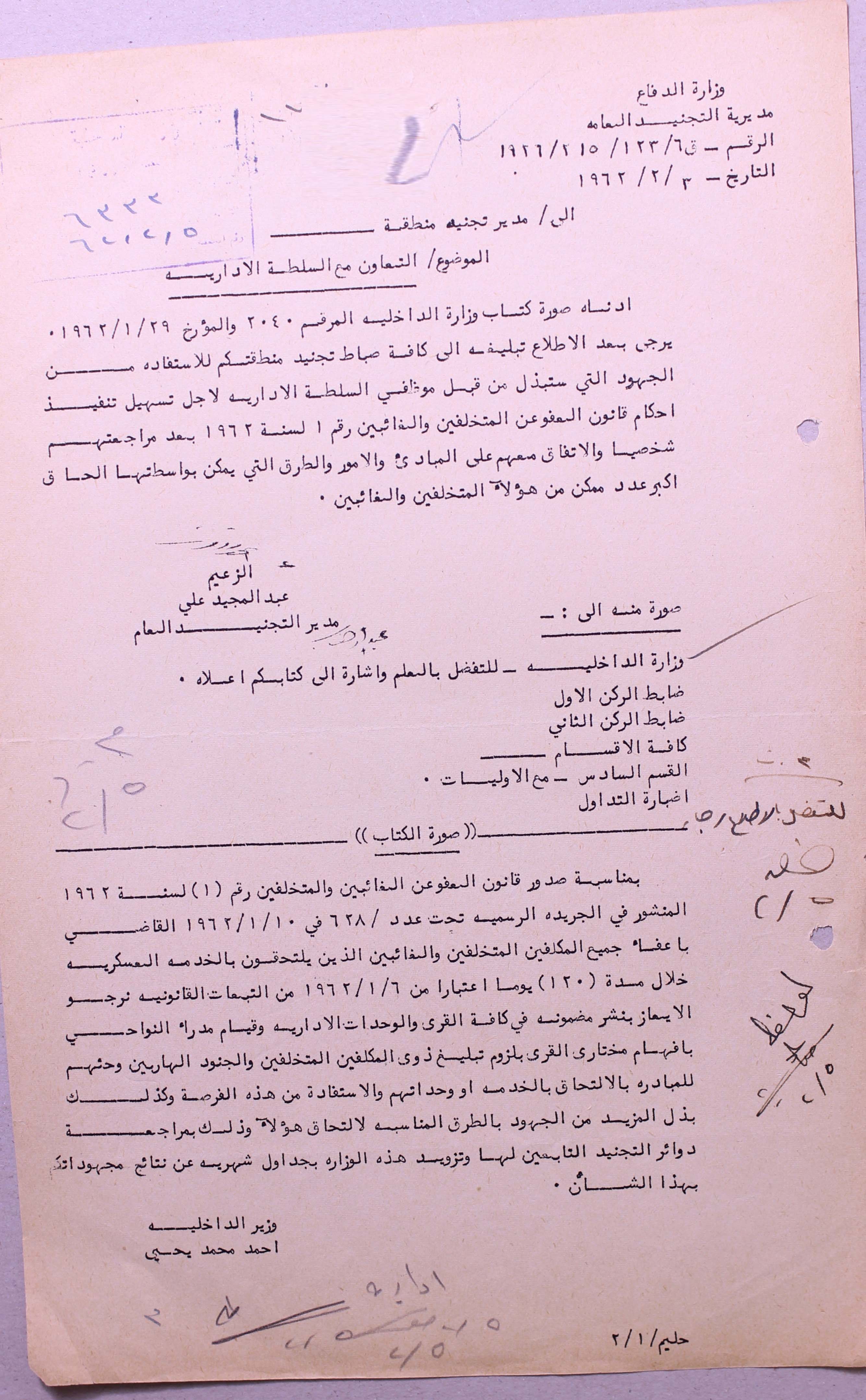 وزارة الدفاع : مديرية التجنيد العامة،