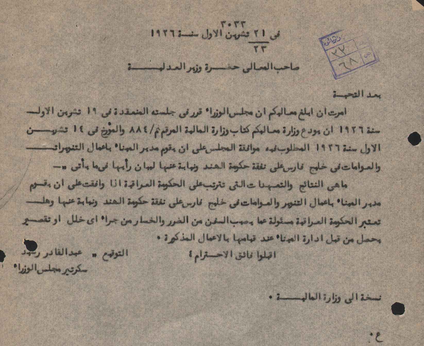 [اعمال التنوير والعوامات في خليج فارس على نفقة حكومة الهند]