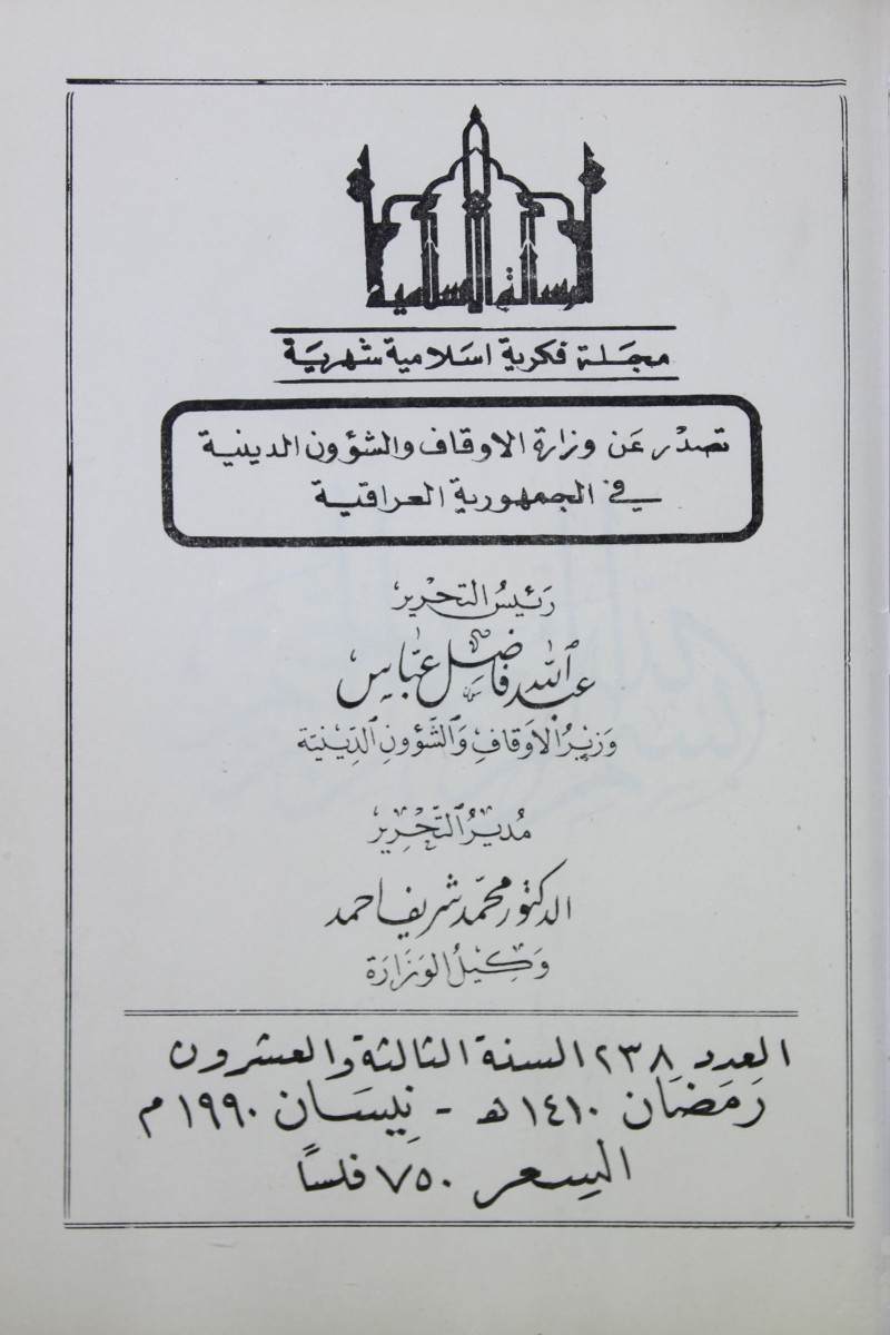 صدرت عن : ديوان الاوقاف و وزارة الاوقاف والشؤون الدينية 1968-2003 ؛ صدرت عن ديوان الوقف السني 2003-