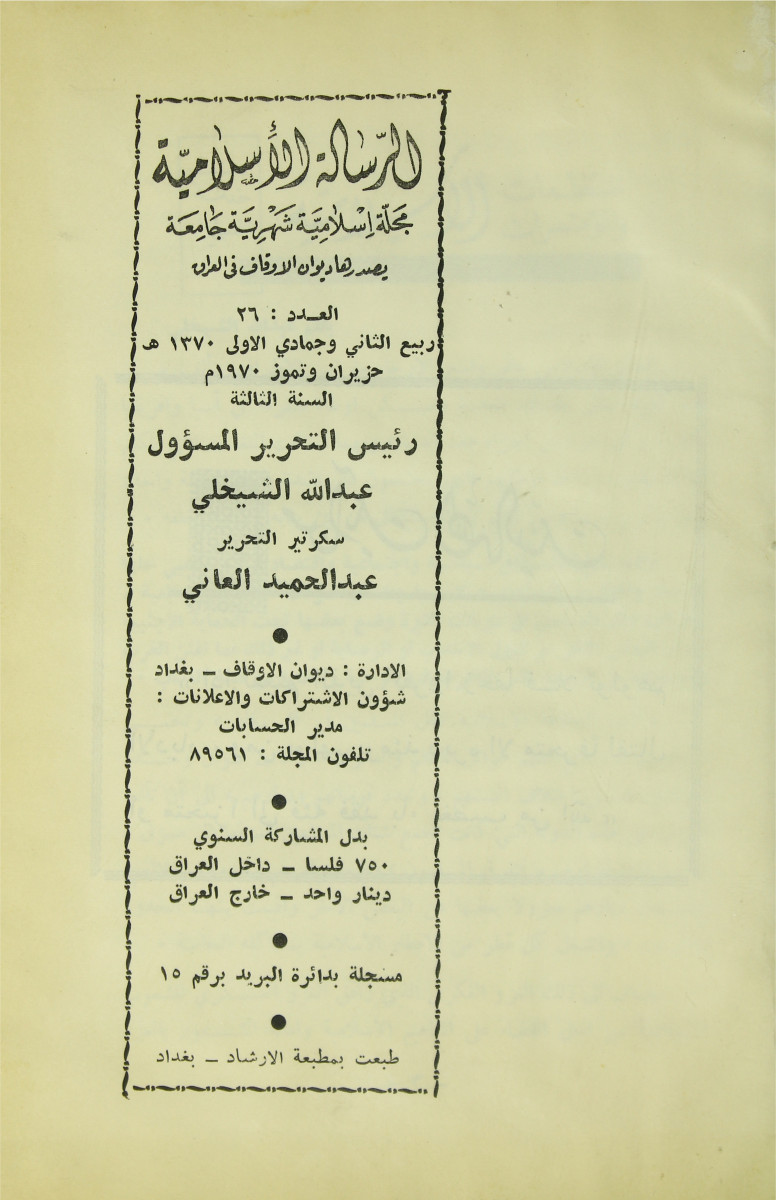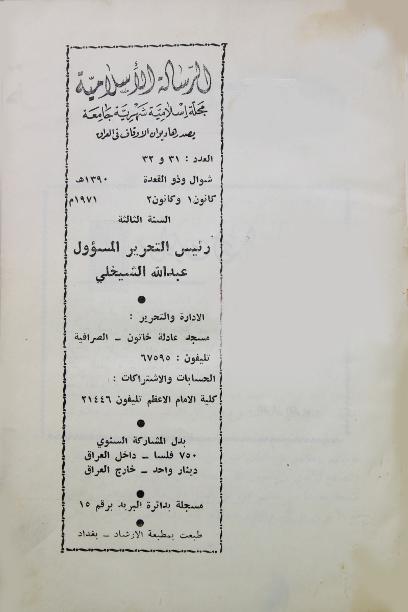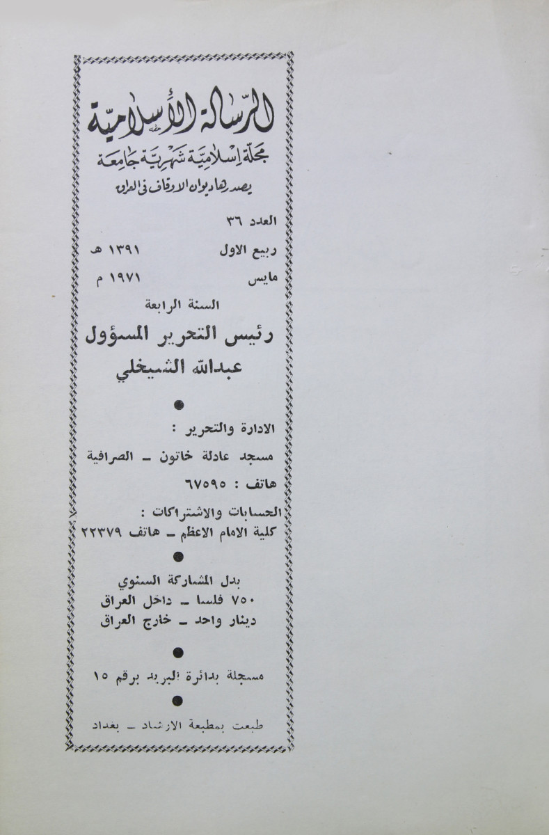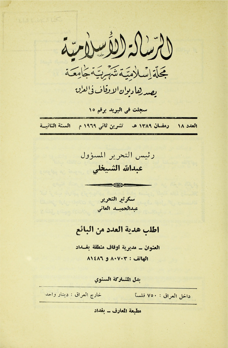 الرسالة الاسلامية (مجلة : بغداد، العراق)