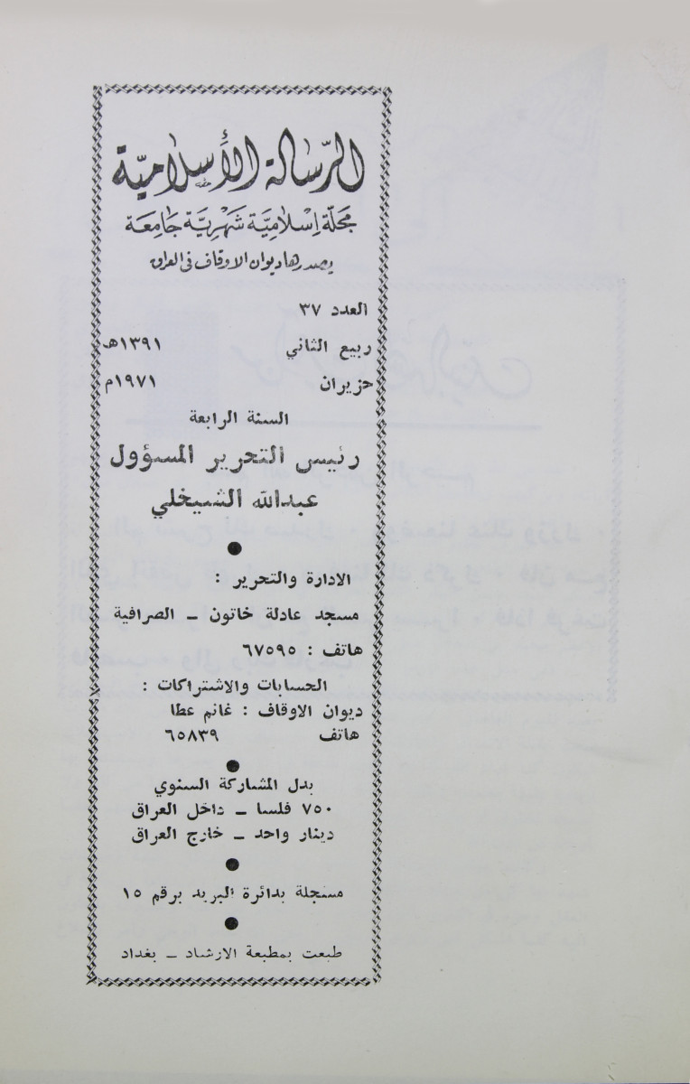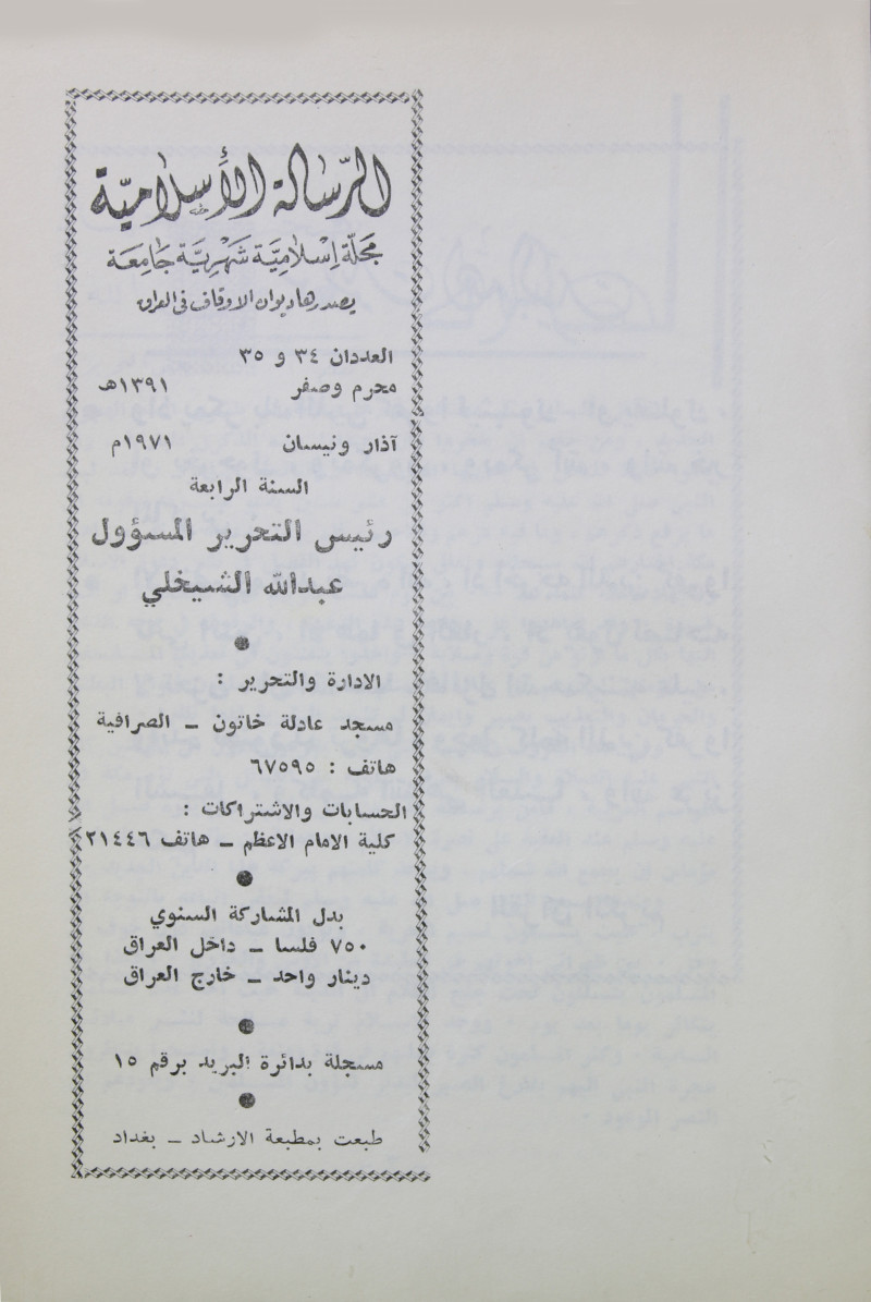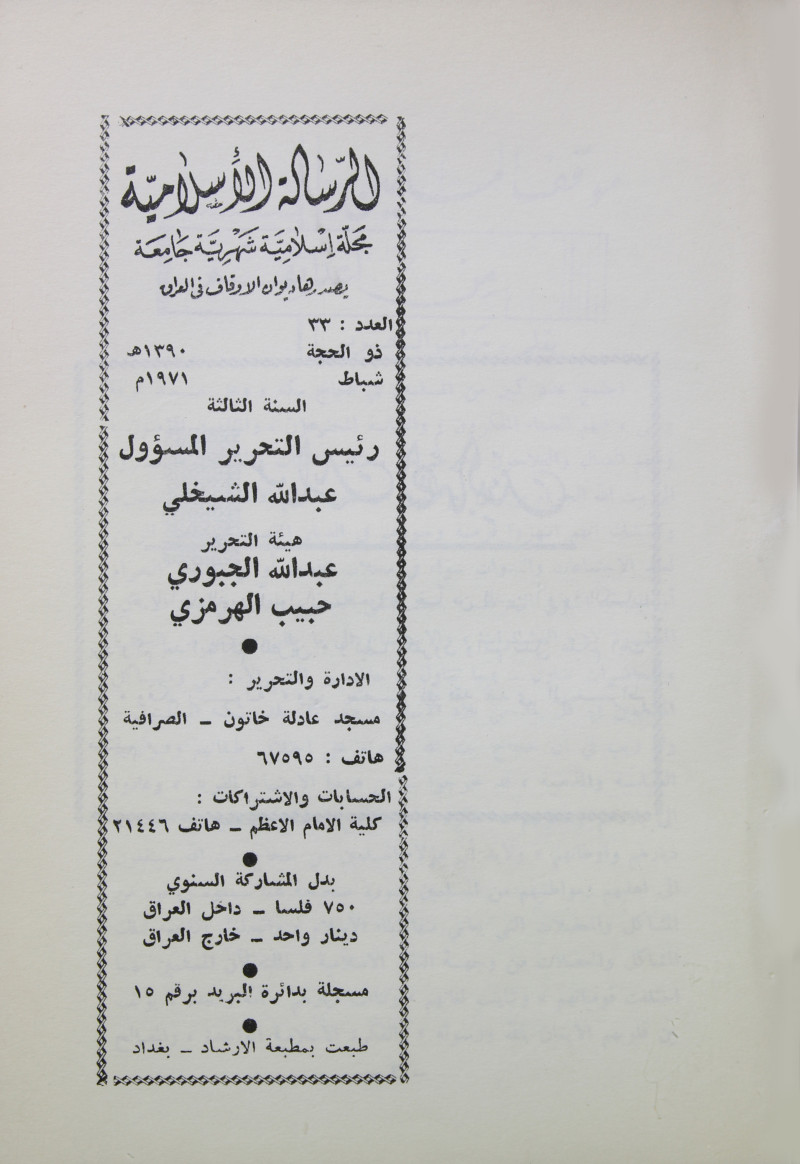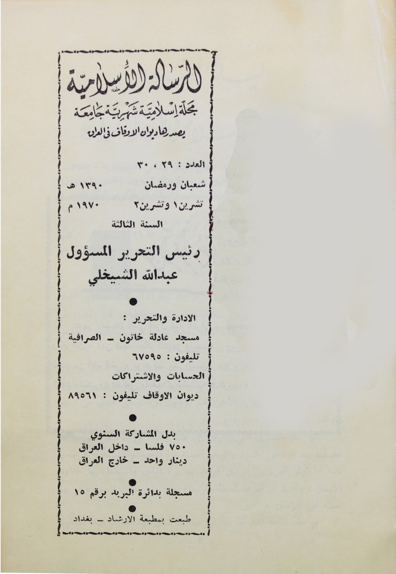 الرسالة الاسلامية (مجلة : بغداد، العراق)