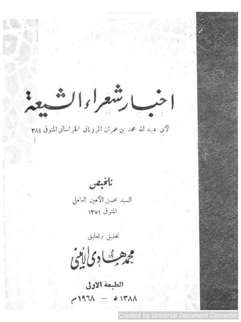 لابي عبيد الله محمد بن عمران المرزباني الخراساني ؛ تلخيص السيد محسن الامين العاملي ؛ تحقيق وتعليق محمد هادي الاميني.