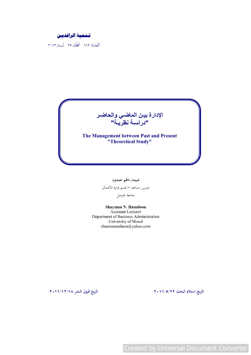دراسة نظرية = The Management between Past and Present : Theoretical Study /