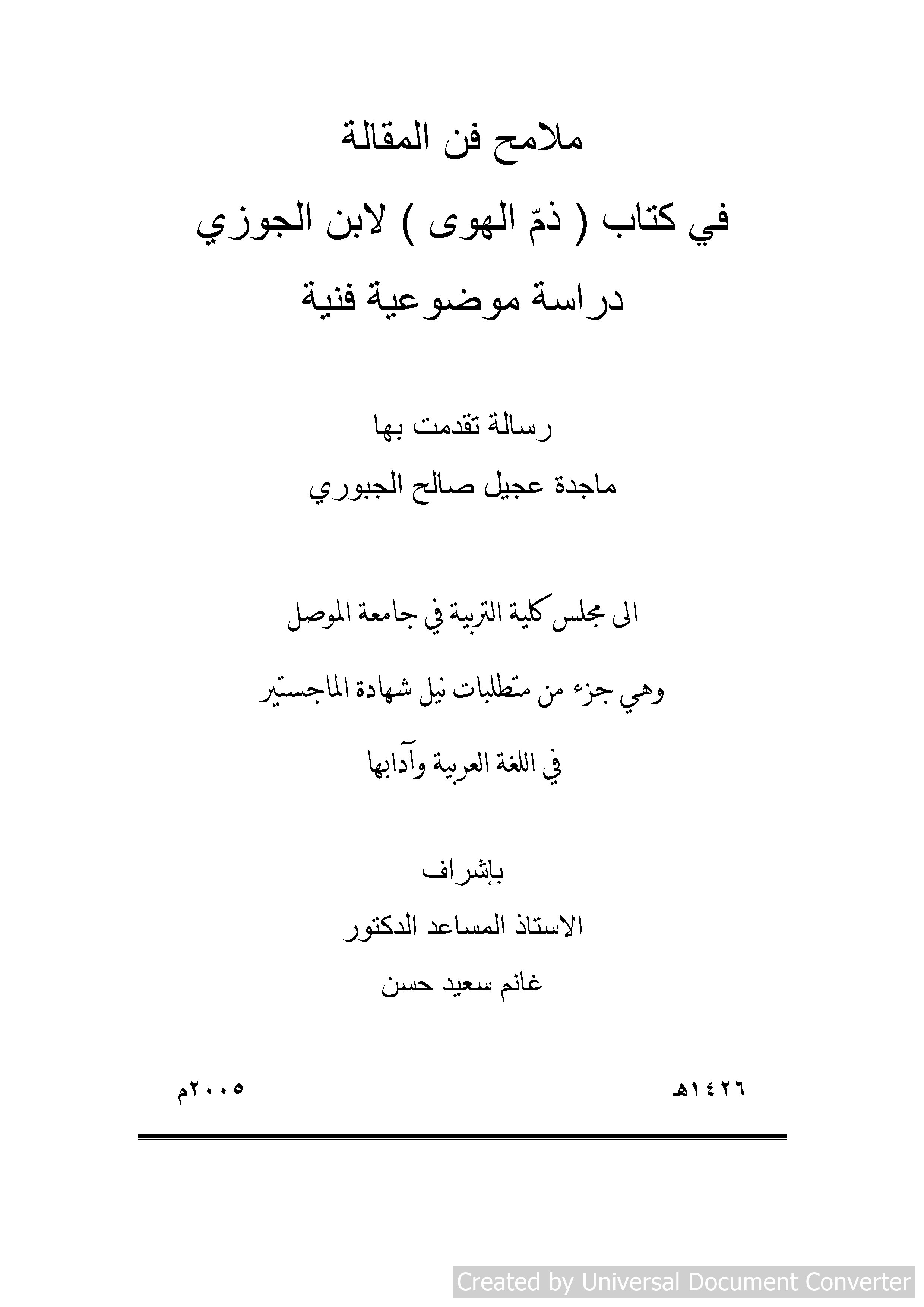 ملامح فن المقالة في كتاب (ذم الهوى) لابن الجوزي :