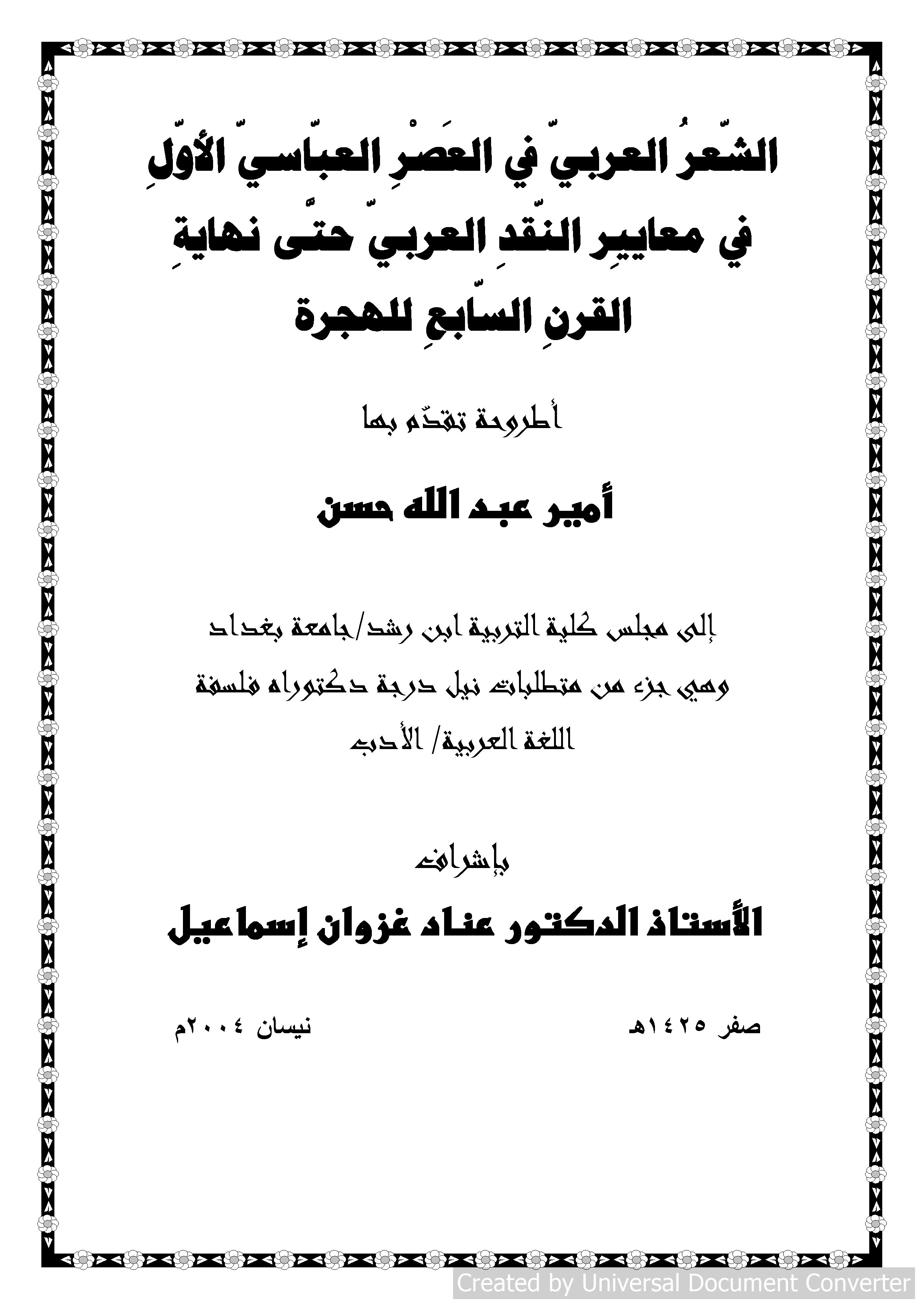 اشرف على الرسالة عناد غزوان إسماعيل.