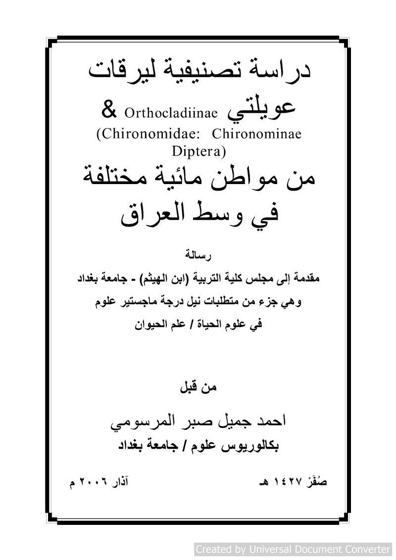 دراسة تصنيفية ليرقات عويلتي orthocladiinae & chironominae (chironomidae :