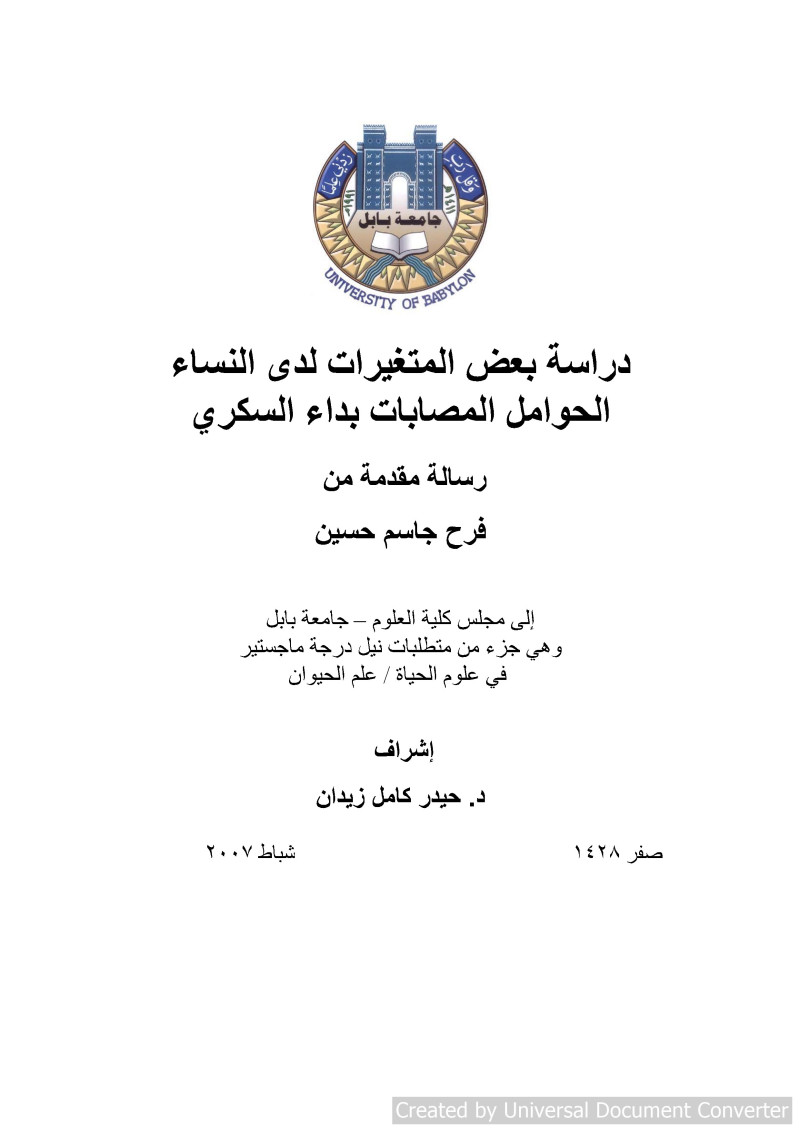 دراسة بعض المتغيرات لدى النساء الحوامل المصابات بداء السكري =