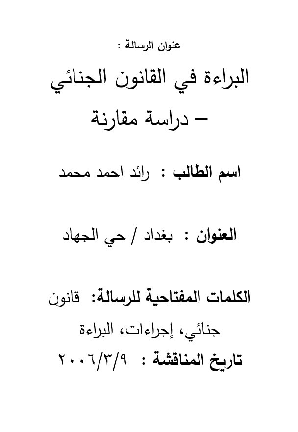 البراءة في القانون الجنائي :