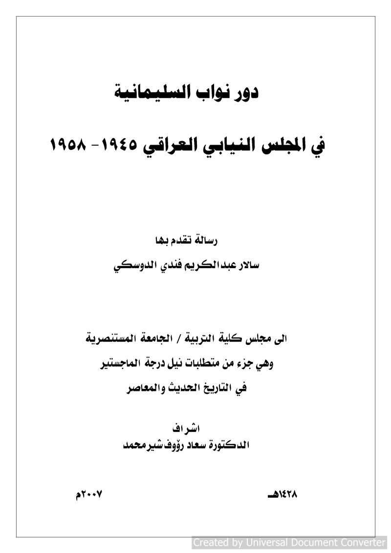 دور نواب السليمانية في المجلس النيابي العراقي 1945- 1958 /