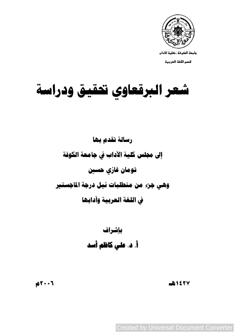 رسالة تقدم بها تومان غازي حسين ؛ إشراف أ. د. علي كاظم أسد.
