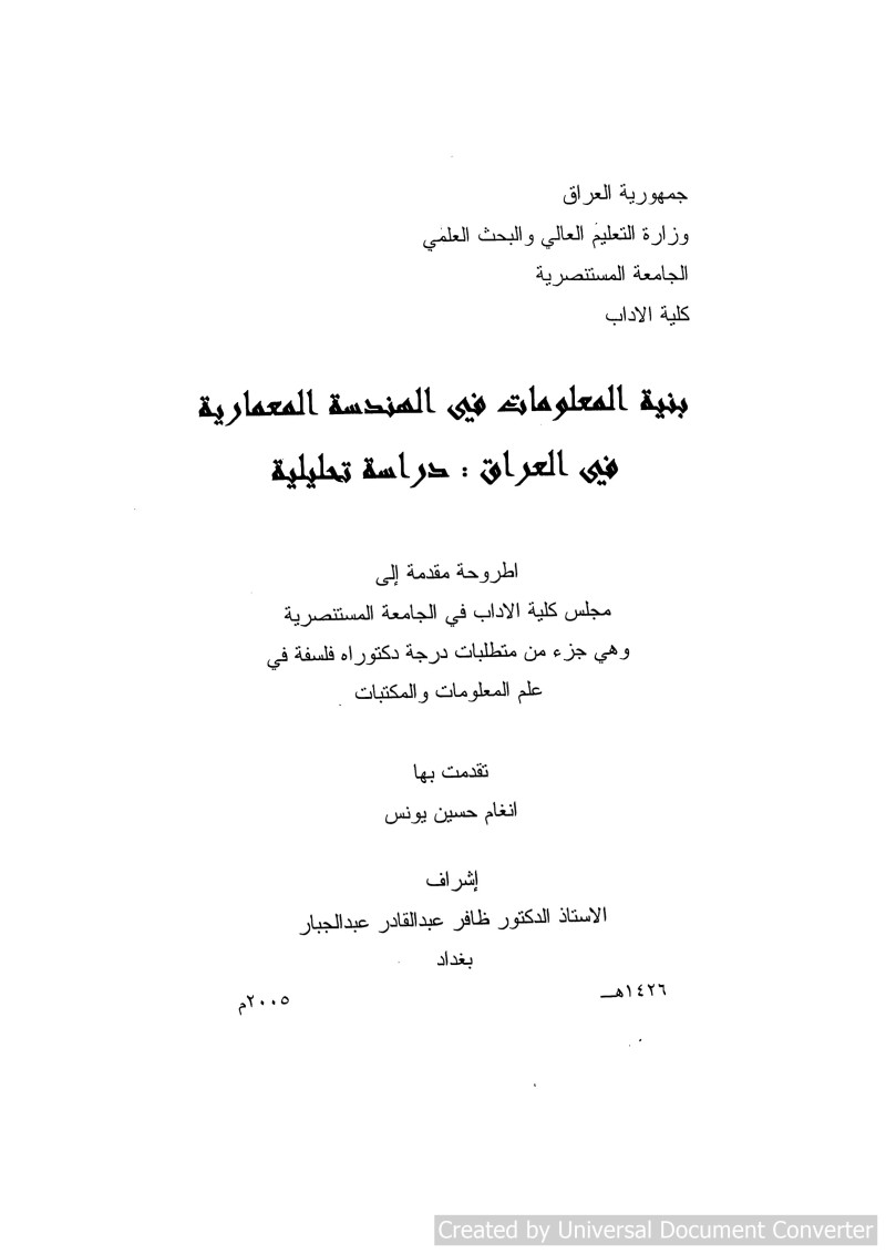 بنية المعلومات في الهندسة المعمارية في العراق = The Structure of Architecture in Iraq : An Analytical Study /