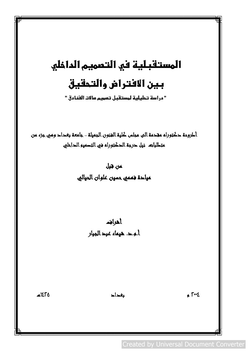 $aجامعة بغداد (العراق). $bكلية الفنون الجميلة. $bقسم التصميم، $eالمؤسسة المانحة للدرجة.