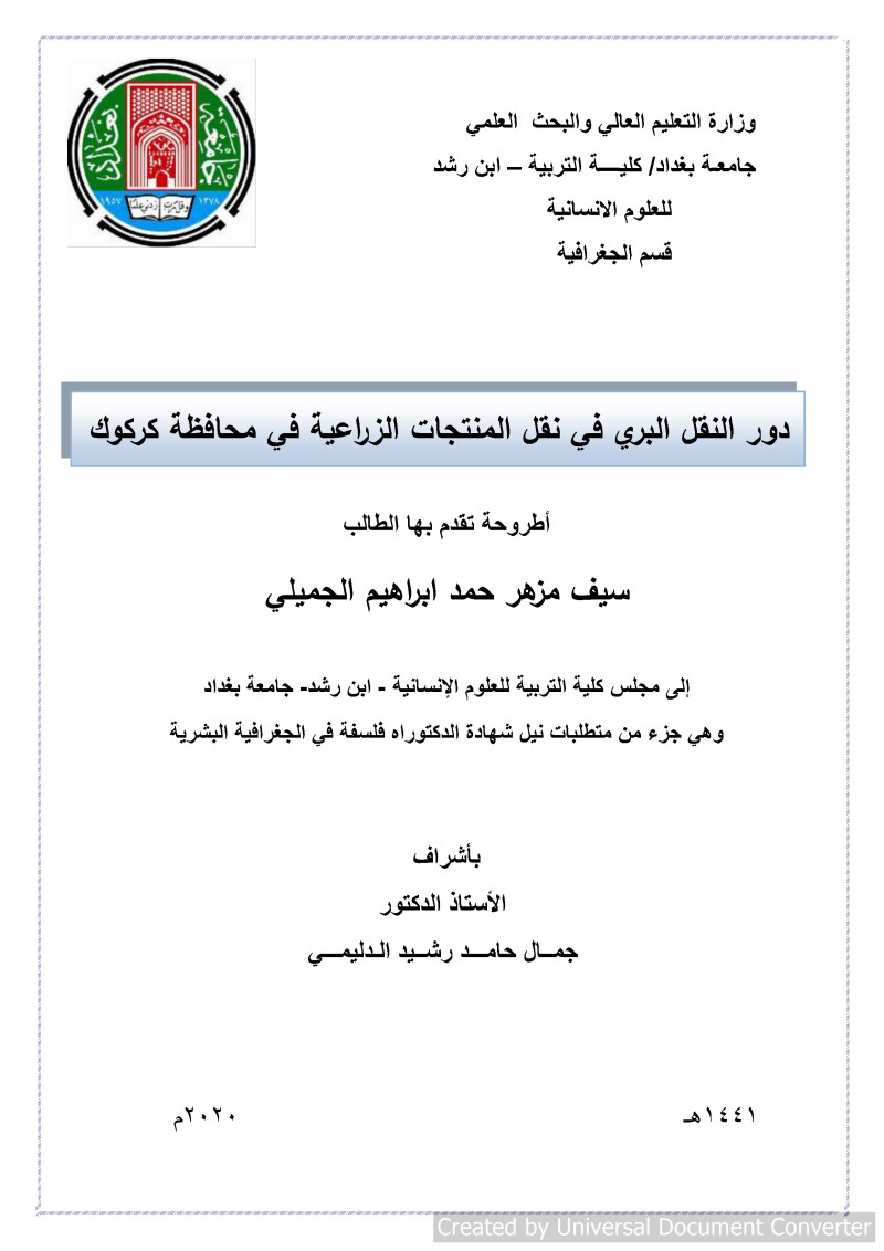 $bدكتوراه $cجامعة بغداد $d2020.