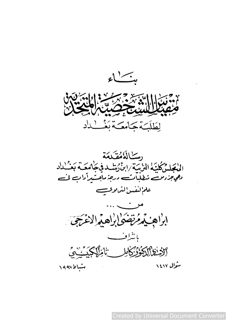 $aجامعة بغداد (العراق). $bكلية التربية (ابن رشد) للعلوم الانسانية. $bقسم علم النفس التربوي، $eالمؤسسة المانحة للدرجة.
