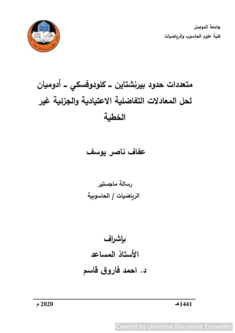 $aمتعددات حدود بيرنشتاين-كلودوفسكي-ادوميان لحل المعادلات التفاضلية الاعتيادية والجزئية غير الخطية = $bBernstein – Chlodowsky – Adomian Polynomials for Solving Nonlinear ordinary and PartialDifferential Equations / $cعفاف ناصر يوسف ؛ باشراف الاستاذ المساعد د. احمد فاروق قاسم.