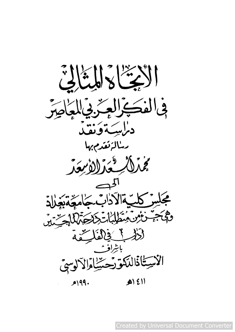 الأتجاه المثالي في الفكر العربي المعاصر :