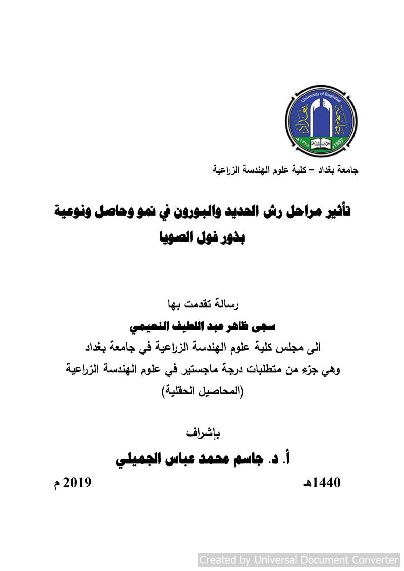 $aجامعة بغداد (العراق). $bكلية علوم الهندسة الزراعية. $bقسم المحاصيل الحقلية، $eالمؤسسة المانحة للدرجة.