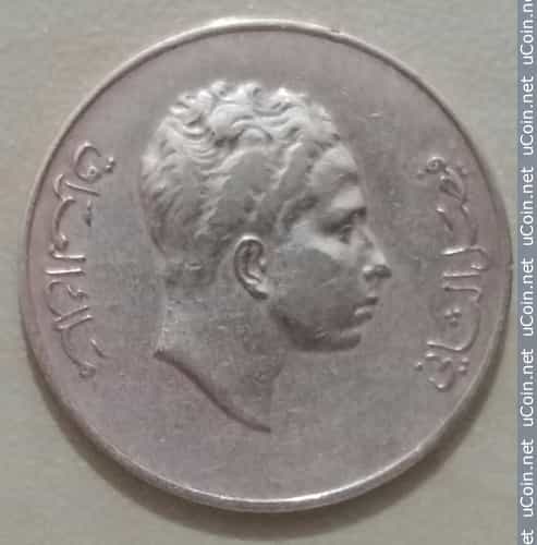 الوجه الامامي منقوش فيصل الثاني / ملك العراق والوجه الخلفي منقوش 1372 / 1953 / 2 فلس / المملكة العراقية.