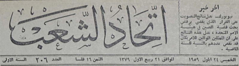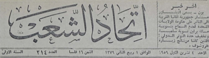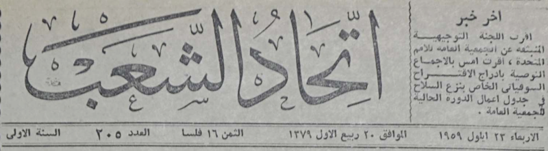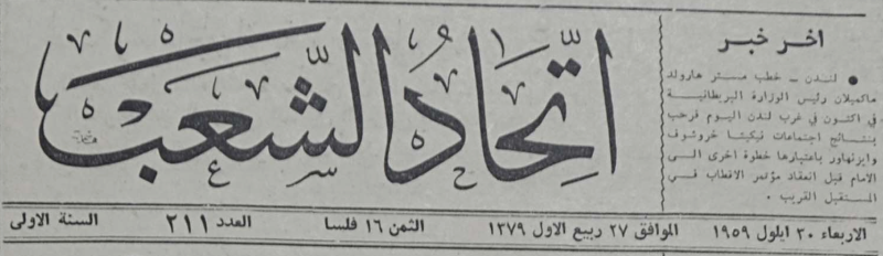 العدد 1، السنة 1 (25 كانون الثاني 1959)-