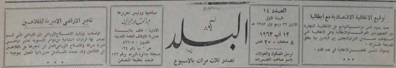 العدد 1، السنة 1 (13 تموز 1963)-