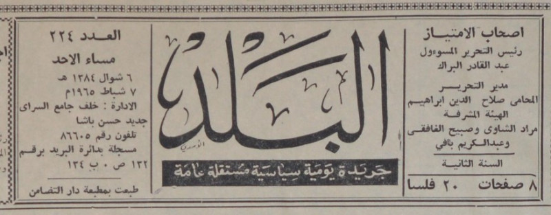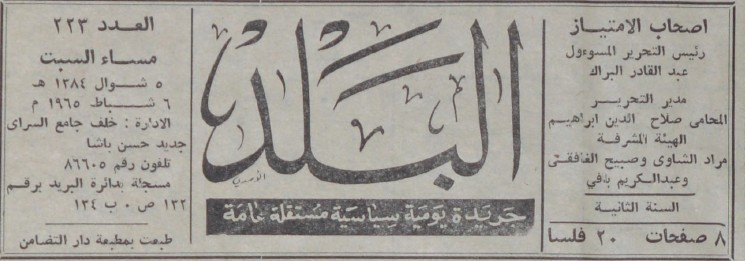 رئيس التحرير المسؤول : عبد القادر البراك.