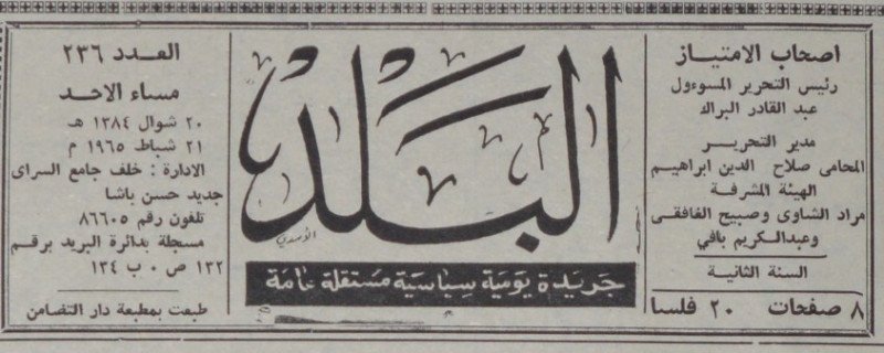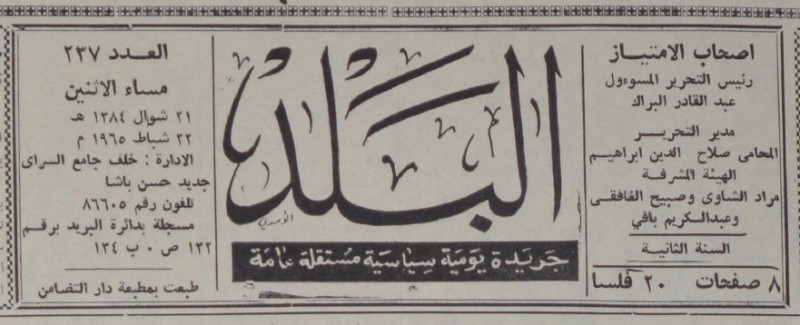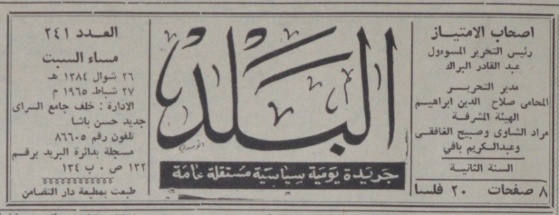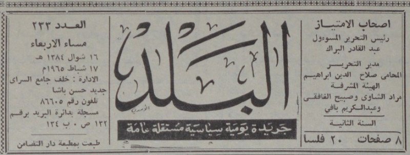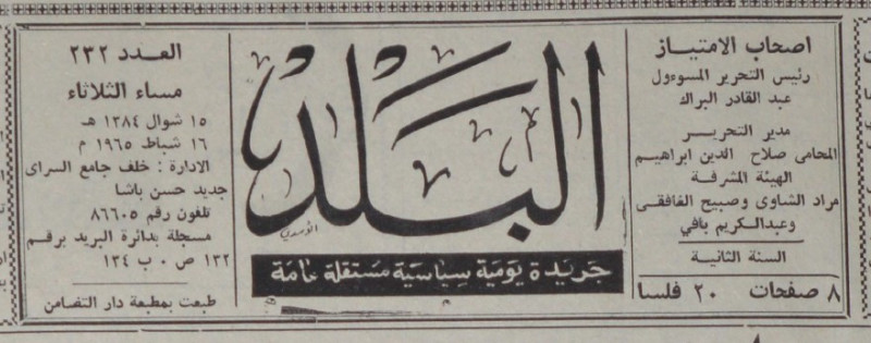 رئيس التحرير المسؤول : عبد القادر البراك.