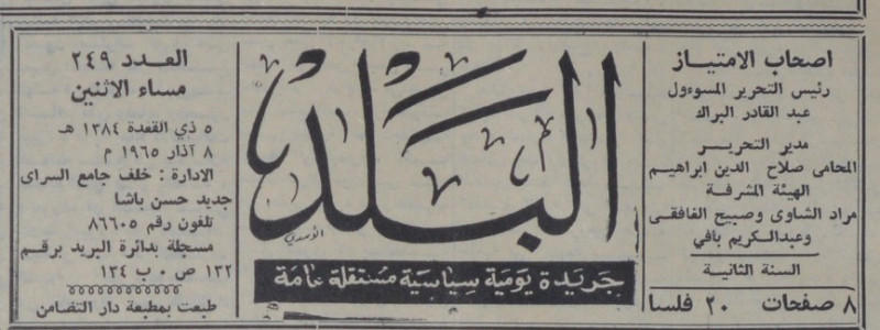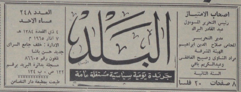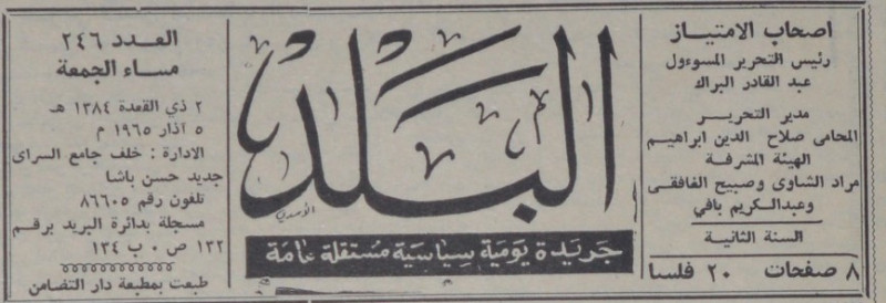 رئيس التحرير المسؤول : عبد القادر البراك.