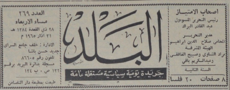 رئيس التحرير المسؤول : عبد القادر البراك.