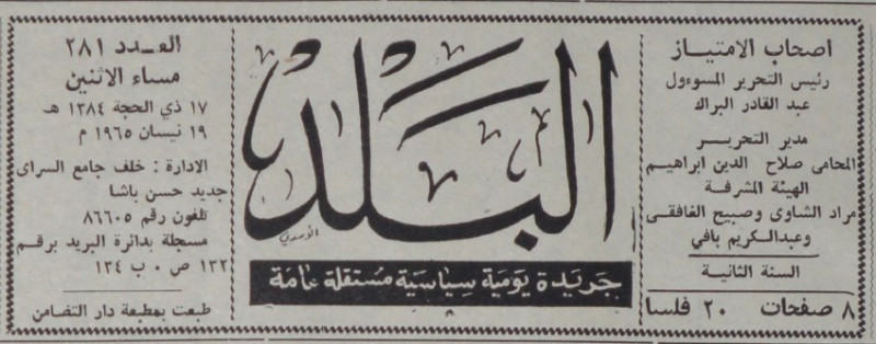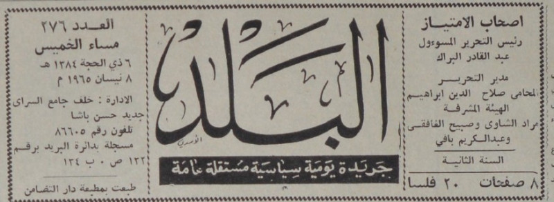 رئيس التحرير المسؤول : عبد القادر البراك.