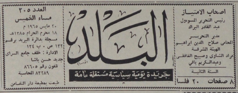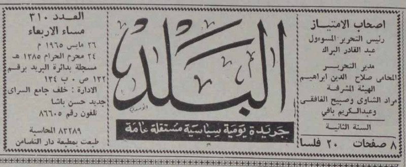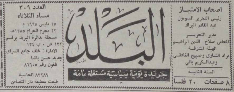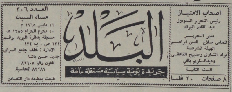 رئيس التحرير المسؤول : عبد القادر البراك.
