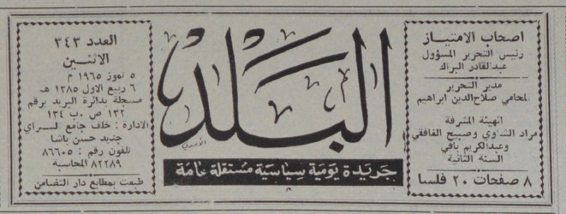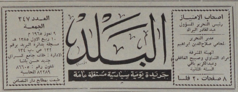 رئيس التحرير المسؤول : عبد القادر البراك.
