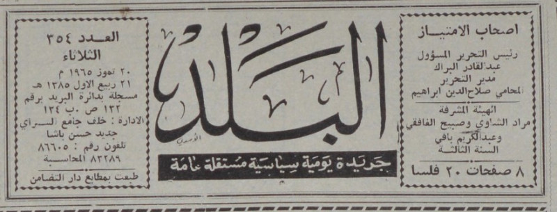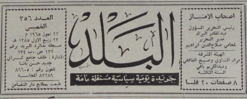 رئيس التحرير المسؤول : عبد القادر البراك.