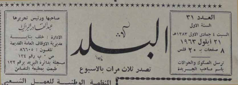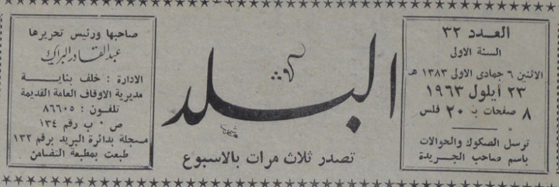 رئيس التحرير المسؤول : عبد القادر البراك.