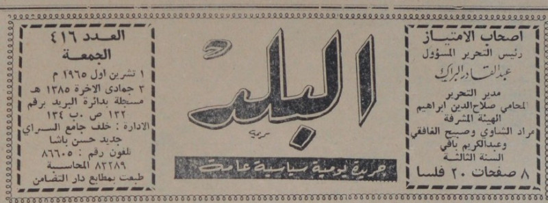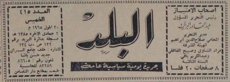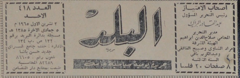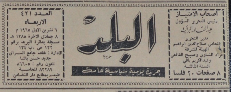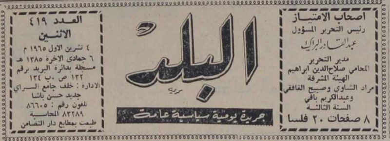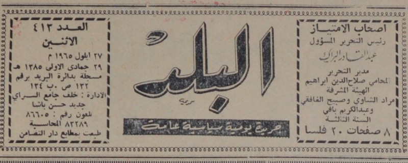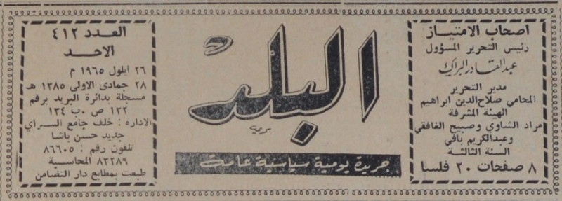 رئيس التحرير المسؤول : عبد القادر البراك.